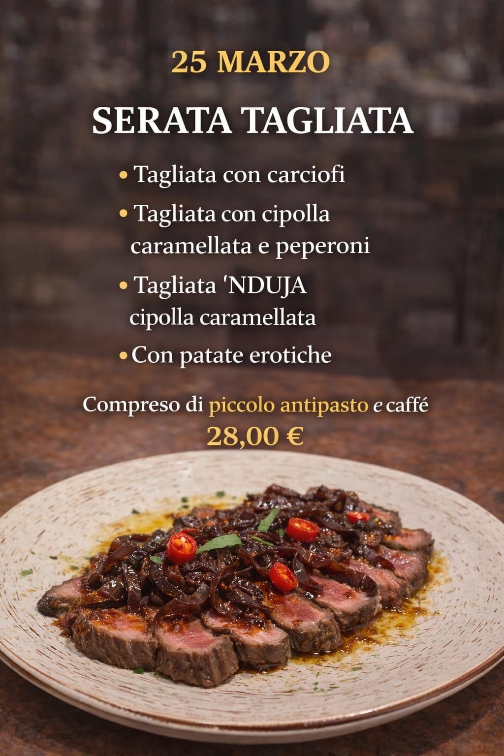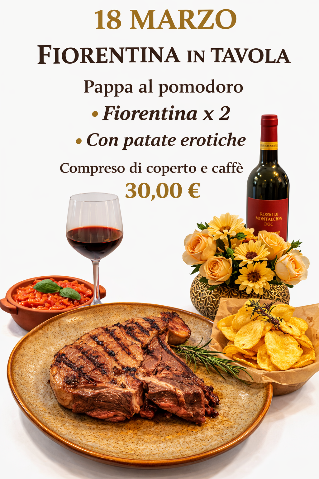 galletto al mattone, piatti che raccontano la passione per la carne di qualità e la cottura perfetta. Tutto è accompagnato da una carta dei vini curata con etichette toscane e nazionali, selezionate per esaltare ogni portata.