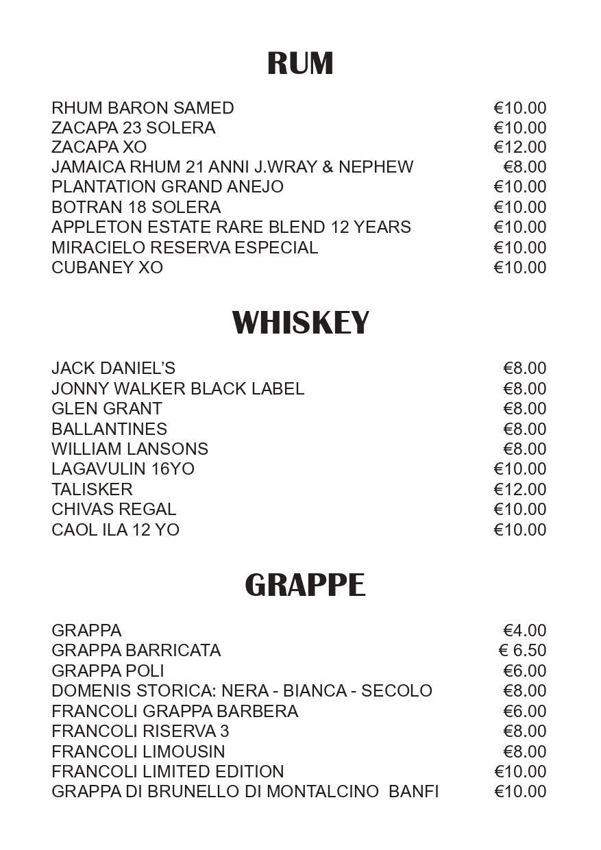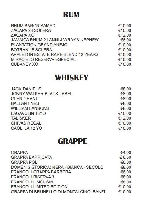 Il menù del ristorante propone alcune delle ricette più rappresentative della